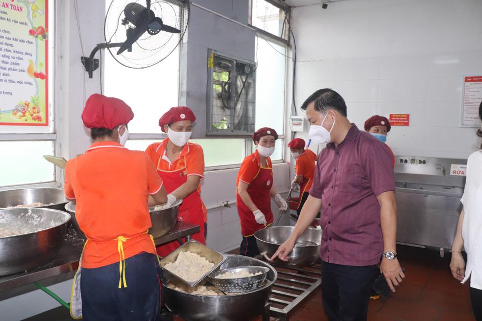 Chi cục trưởng Chi cục ATVSTP Hà Nội Đặng Thanh Phong cùng đoàn kiểm tra bếp ăn trường học trên địa bàn TP Hà Nội.